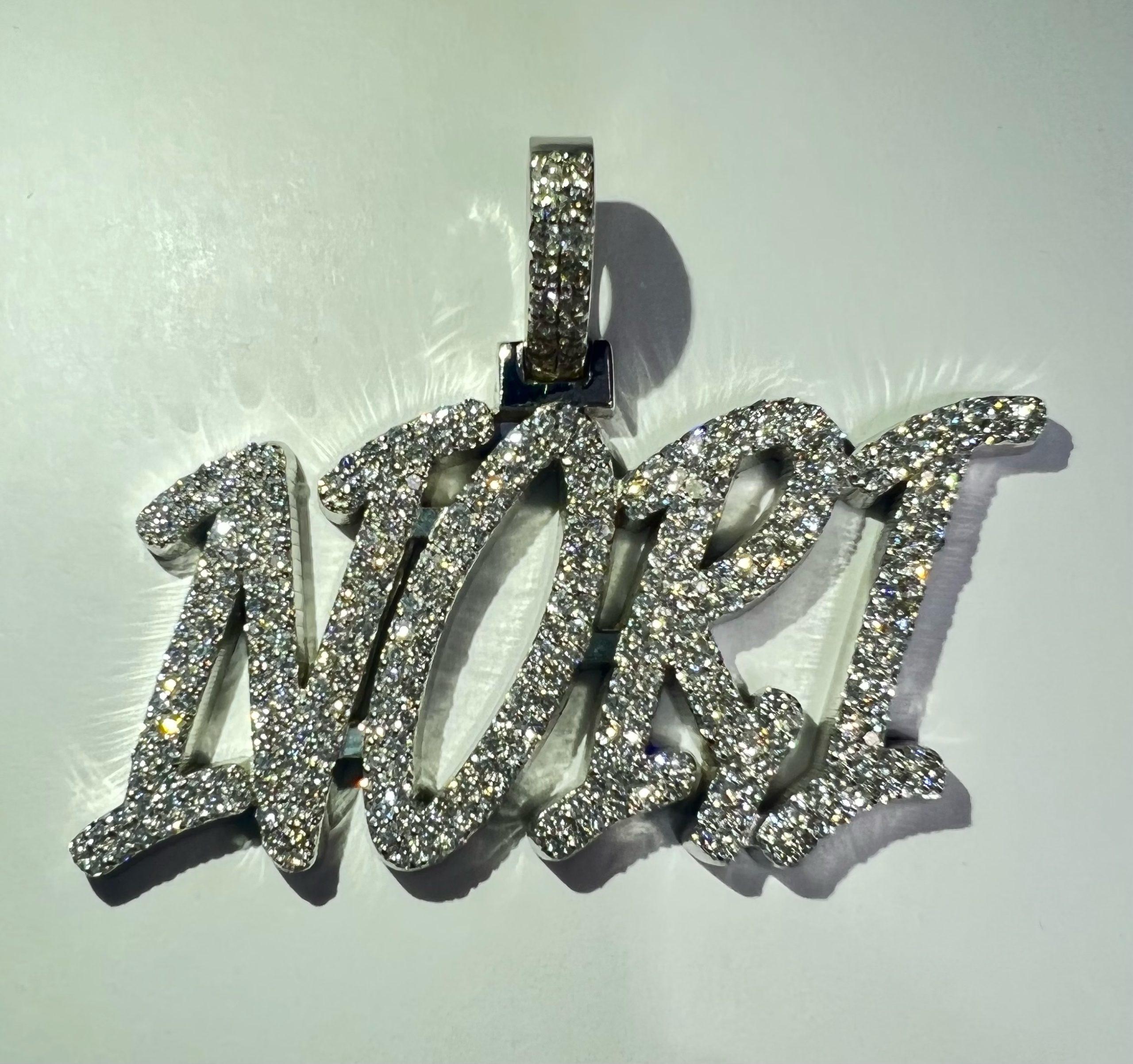 Looking for a custom namepiece made with 2 row diamonds and gold? We make customs in any design so call us with an idea and we’ll make it happen at an affordable cost!